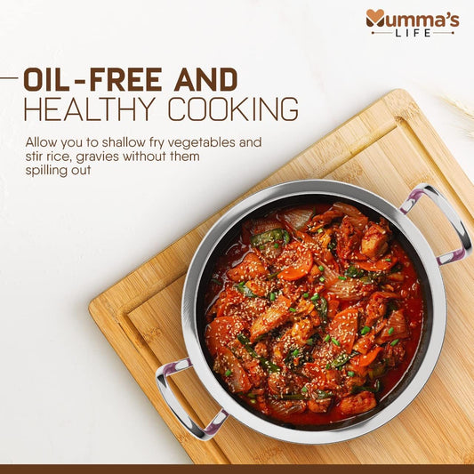 Mumma's LIFE Triply Induction Friendly Stainless Steel Kadhai with Lid (28CM (4.1Ltr))