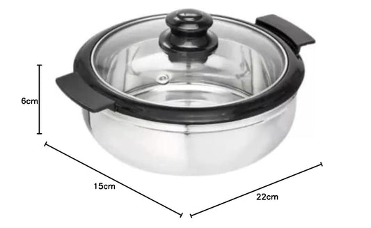 Stainless Steel Thermoware Casserole with Glass Lid| Hot Pot Roti Box with Lid Set of 3 (3500 X 3Pcs)