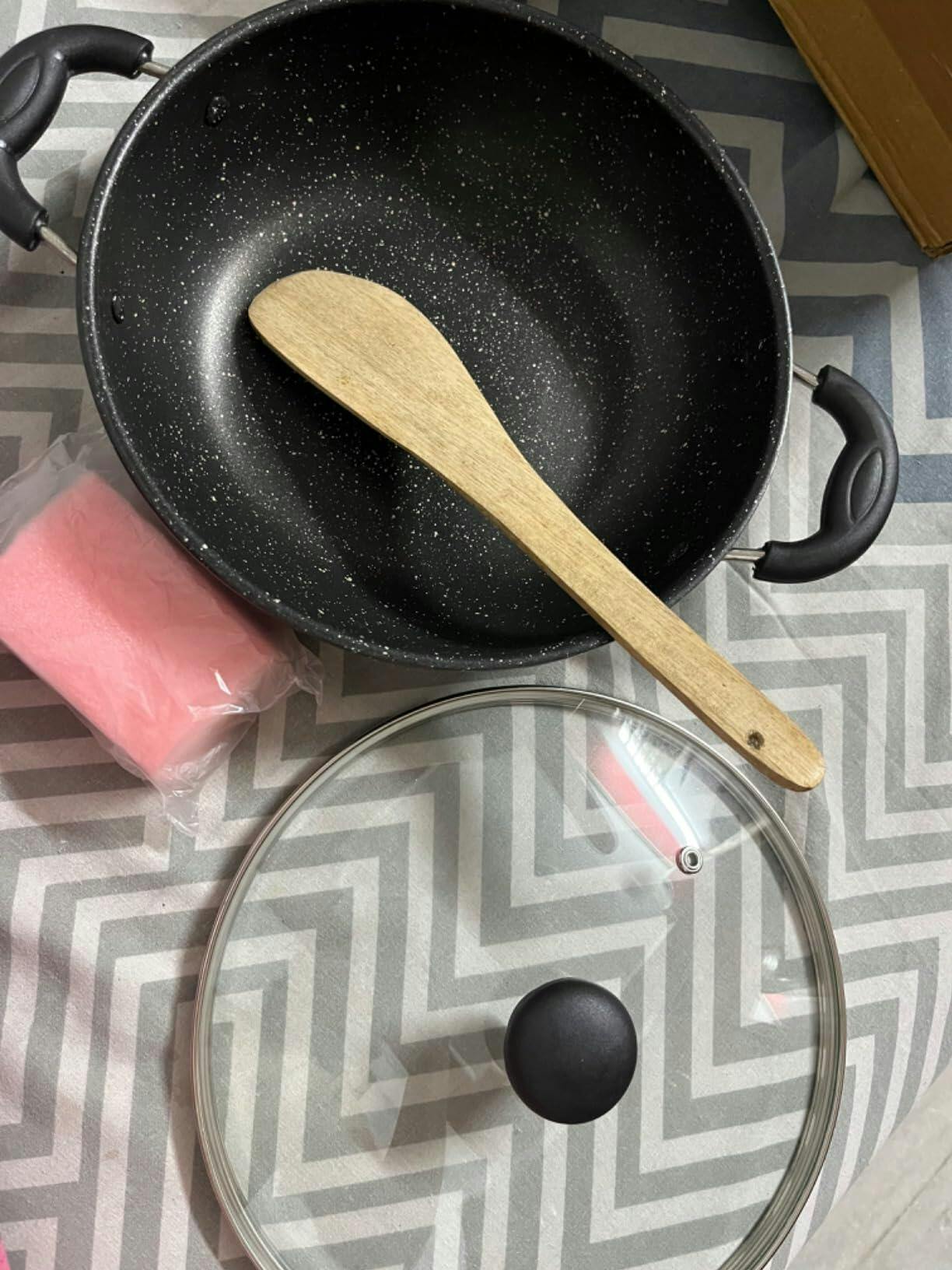 - Package Content : 1- Kadai and 1- glass lid with Spatula & Sponge